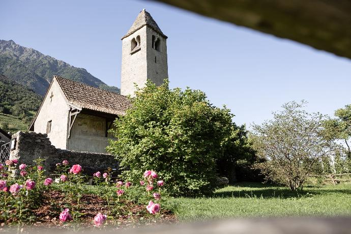 In einer malerischen Kulisse, umgeben von Apfelbäumen, steht das kleine Kirchlein St. Prokulus in Naturns. Kunsthistorisch bedeutsam sind insbesondere die frühmittelalterlichen Fresken im Inneren. Das gegenüberliegende Prokulus Museum stellt eine Ergänzung zur Kirche dar.